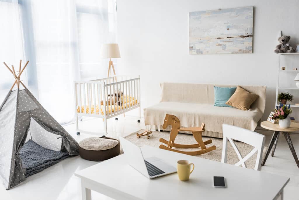 First, choose the quietest bedroom. If there is a room close to the main road, it might not be the best for a baby. Therefore, the backroom furthest from life on your street is a great choice. If this isn’t possible, closing the windows and using a white noise machine can help prolong naps.