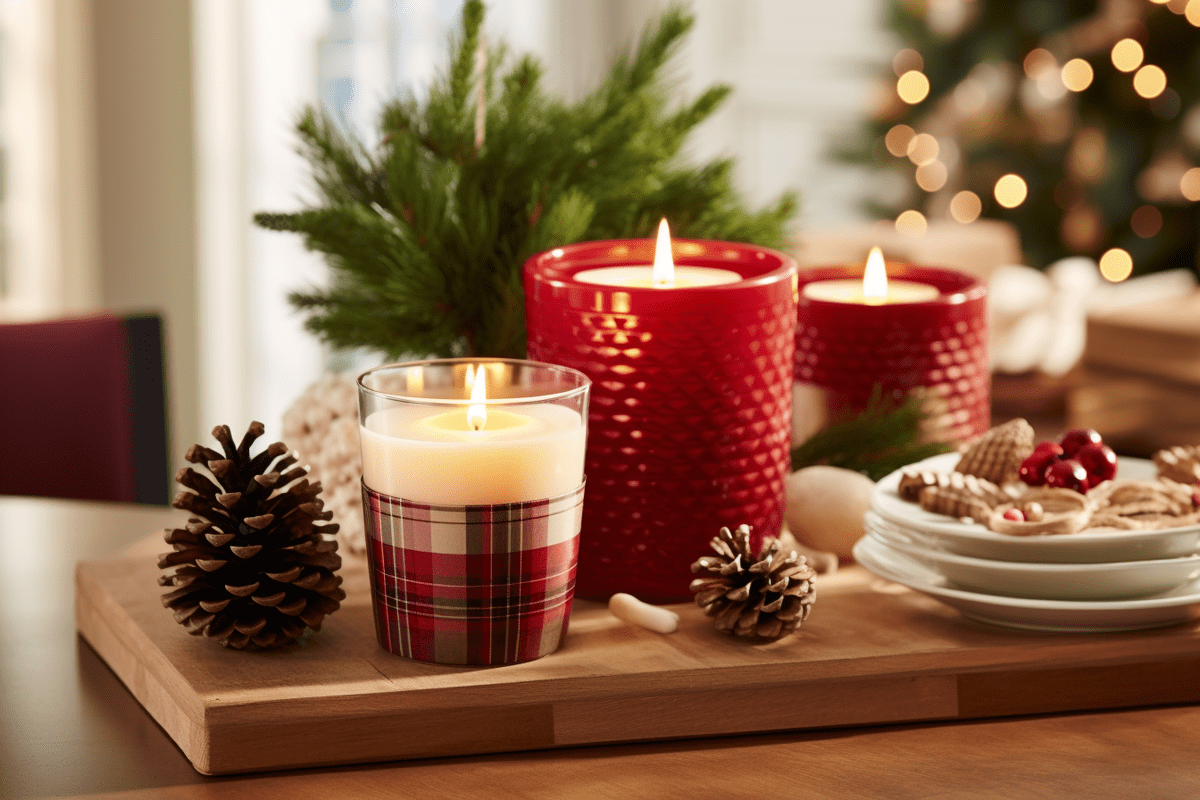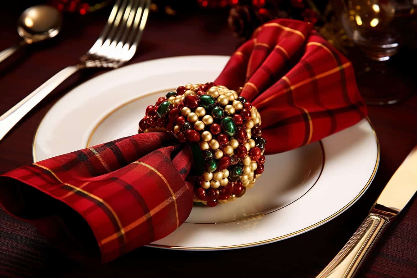 - Use a plaid or holiday-themed tablecloth as the base for your setting.