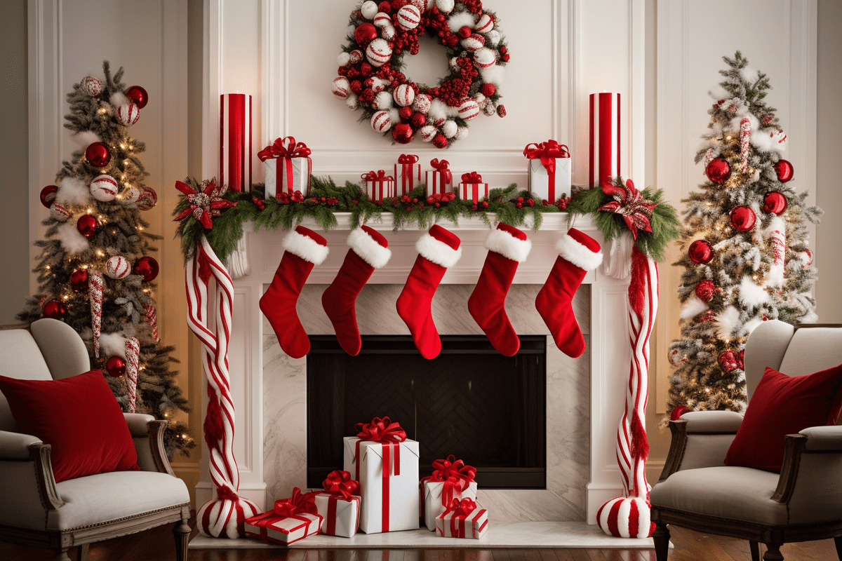 Add some warmth and charm to your living room by decorating your fireplace mantel with holiday decor. Here are a few ideas: